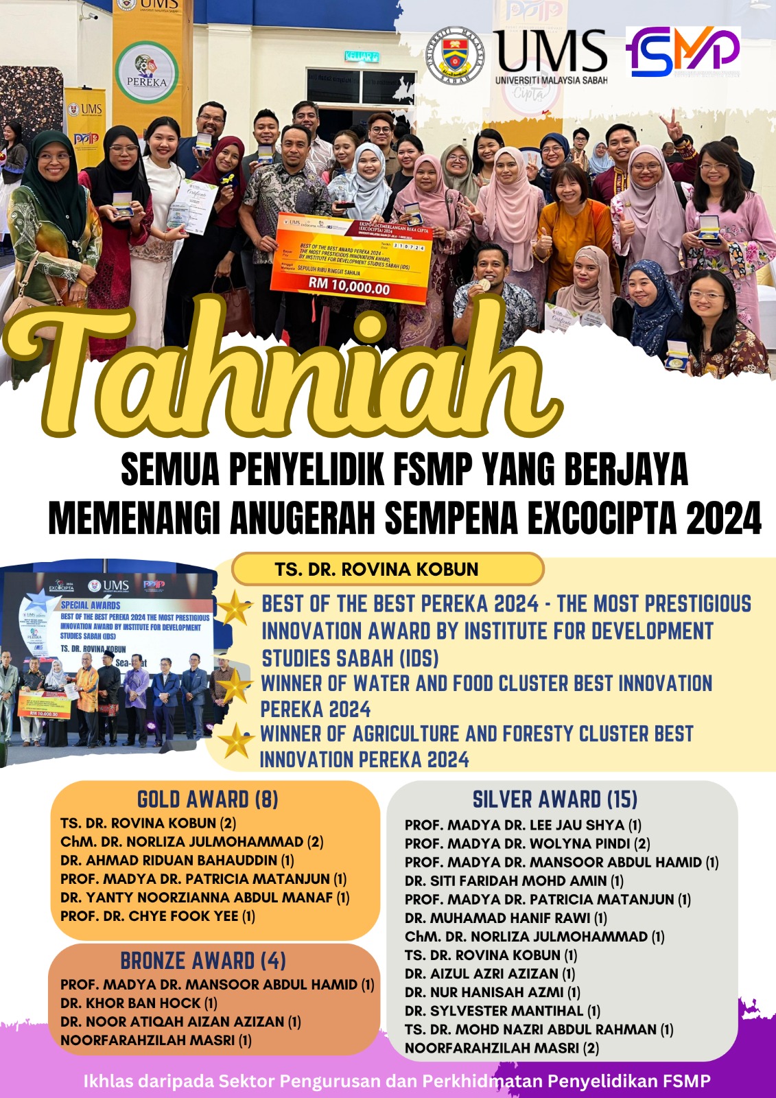 Academics from the Faculty of Food Science and Nutrition have consistently demonstrated excellence in research and innovation, earning prestigious recognition at national, international, and university levels. Their achievements include innovation awards for groundbreaking work in food technology, functional ingredients, sustainable food systems, and halal science. These accolades reflect the faculty’s commitment to impactful research, industry relevance, and contributions to advancing food science for societal well-being. Notable among them are: