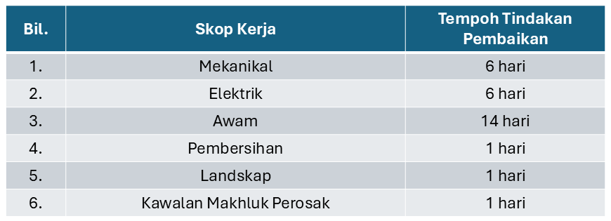 Berapa lama tindakan akan diambil selepas aduan kerosakan dibuat?