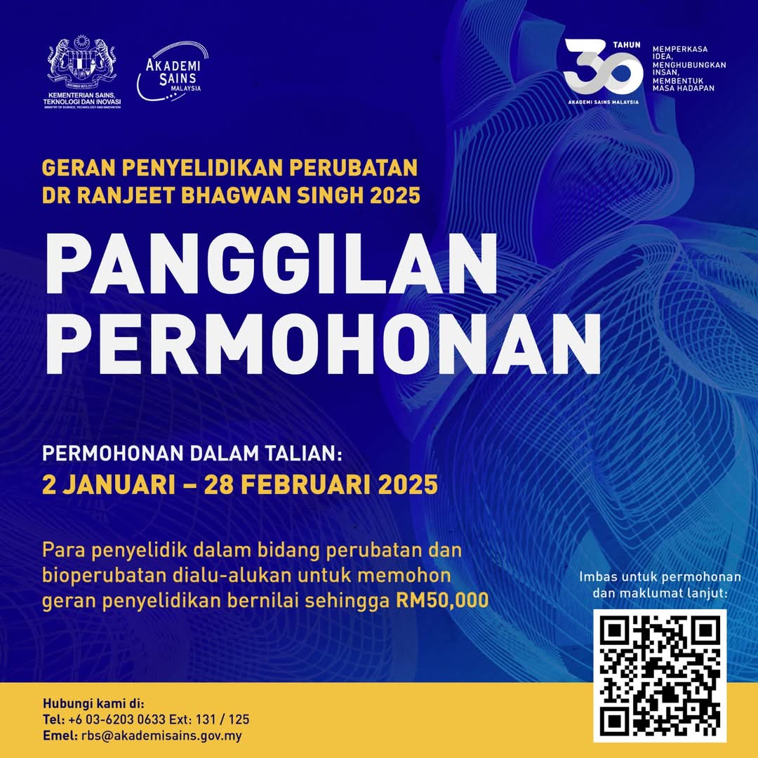 Jangan lepaskan peluang ini! Hantar permohonan anda sekarang di www.akademisains.gov.my/2025-rbs/Β sebelumΒ 25 Februari 2025.