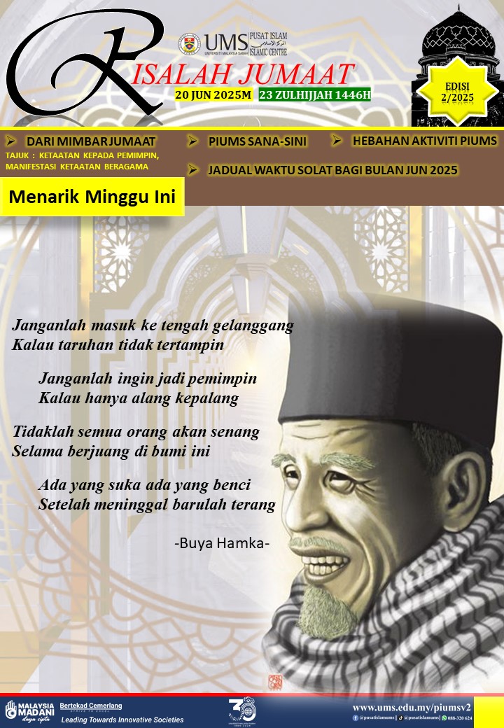 Pusat Islam Universiti Malaysia Sabah (PIUMS) telah menerbitkan Risalah Jumaat bagi edisi 2/2025 melalui pautan ini: https://online.pubhtml5.com/cwye/trek/.