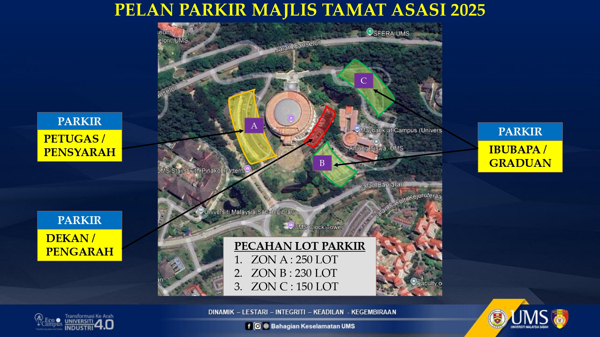 23 Oktober 2025 Jumlah paparan: 121 Lokasi Parkir Kenderaan Sempena Majlis Tamat Asasi UMS 2025 Cetak Emel Pengumuman Daripada: Pusat Persediaan Sains dan Teknologi