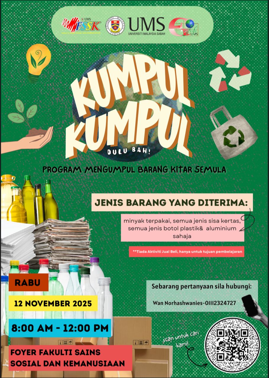 Pelajar kursus AG30403 Semester 1 Sesi 2025/2026 akan menjalankan program mengumpul barang kitar semula seperti yang berikut: