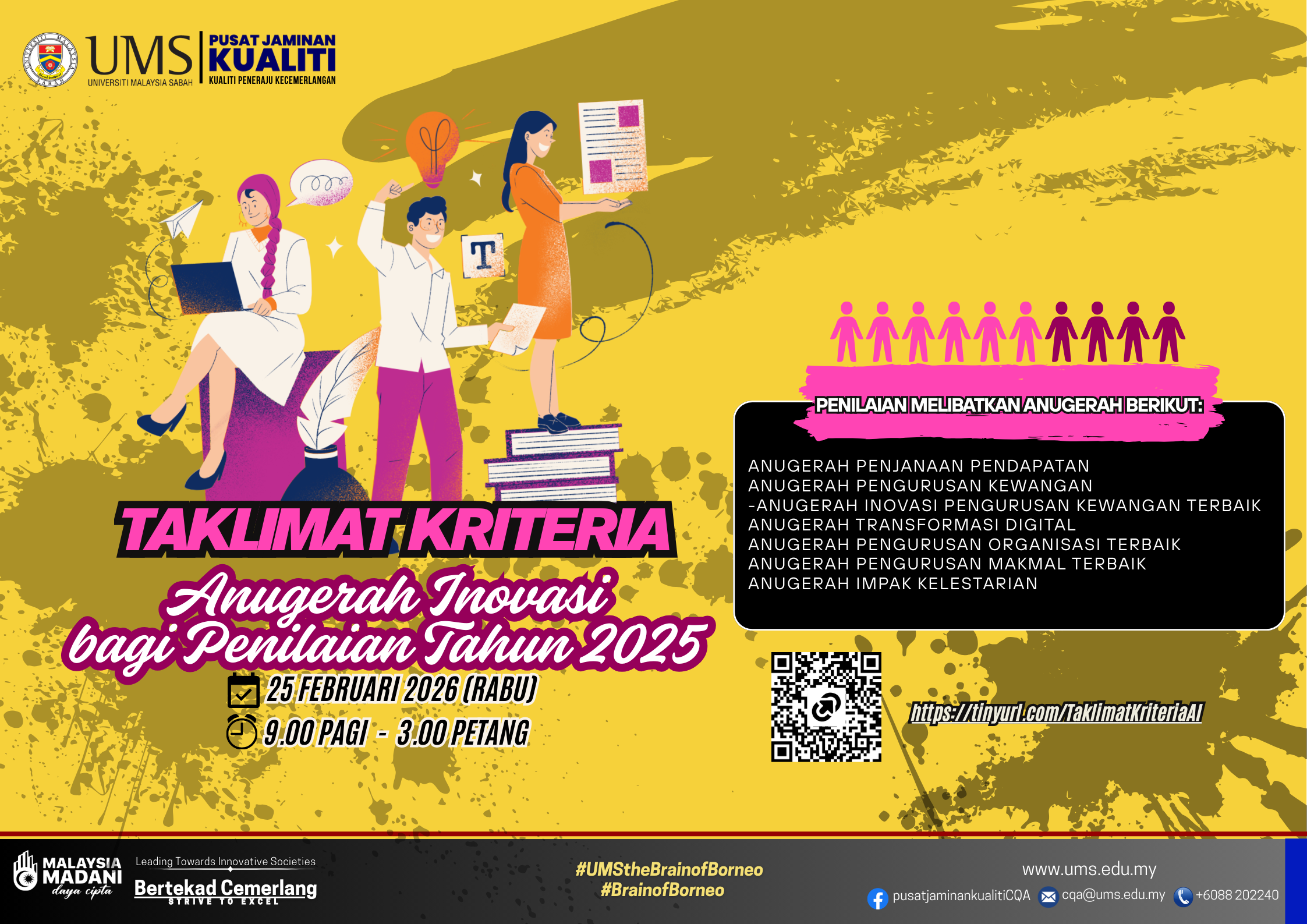 Jawatankuasa Kualiti dan Inovasi Pentadbiran akan mengadakan Taklimat Kriteria Penilaian kepada seluruh JAFPIB : Anugerah Inovasi bagi Penilaian Tahun 2025 seperti ketetapan berikut :-