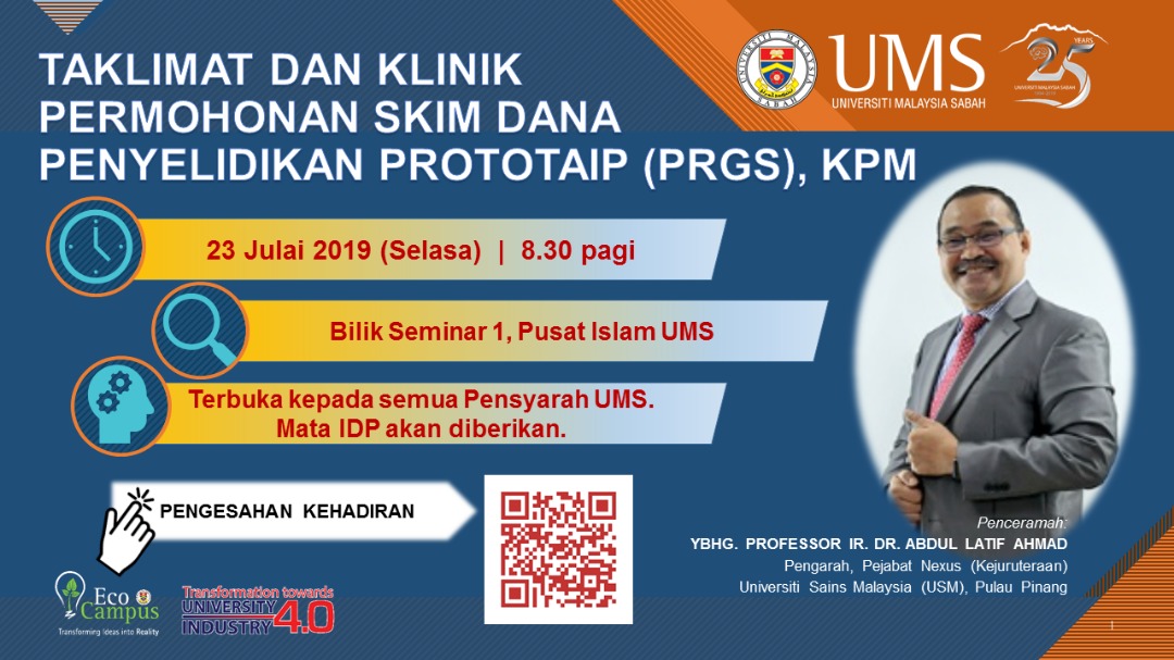 Perkara : JEMPUTAN TAKLIMAT DAN KLINIK PERMOHONAN SKIM DANA PENYELIDIKAN PROTOTAIP (PROTOTYPE RESEARCH GRANT SCHEME), KPM FASA 2/2019