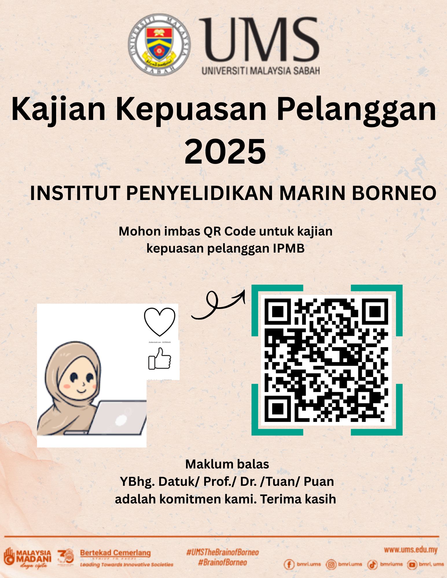 Mohon jasa baik YBhg. Datuk/Prof./Dr./Tuan/Puan/Cik agar dapat meluangkan sedikit masa untuk mengisi soal selidik kajian kepuasan pelanggan melalui pautan   https://eoffice.ums.edu.my/e-respon/kepuasan_pelanggan.php?id=7&key=IPMB atau imbas kod QR yang tertera.
