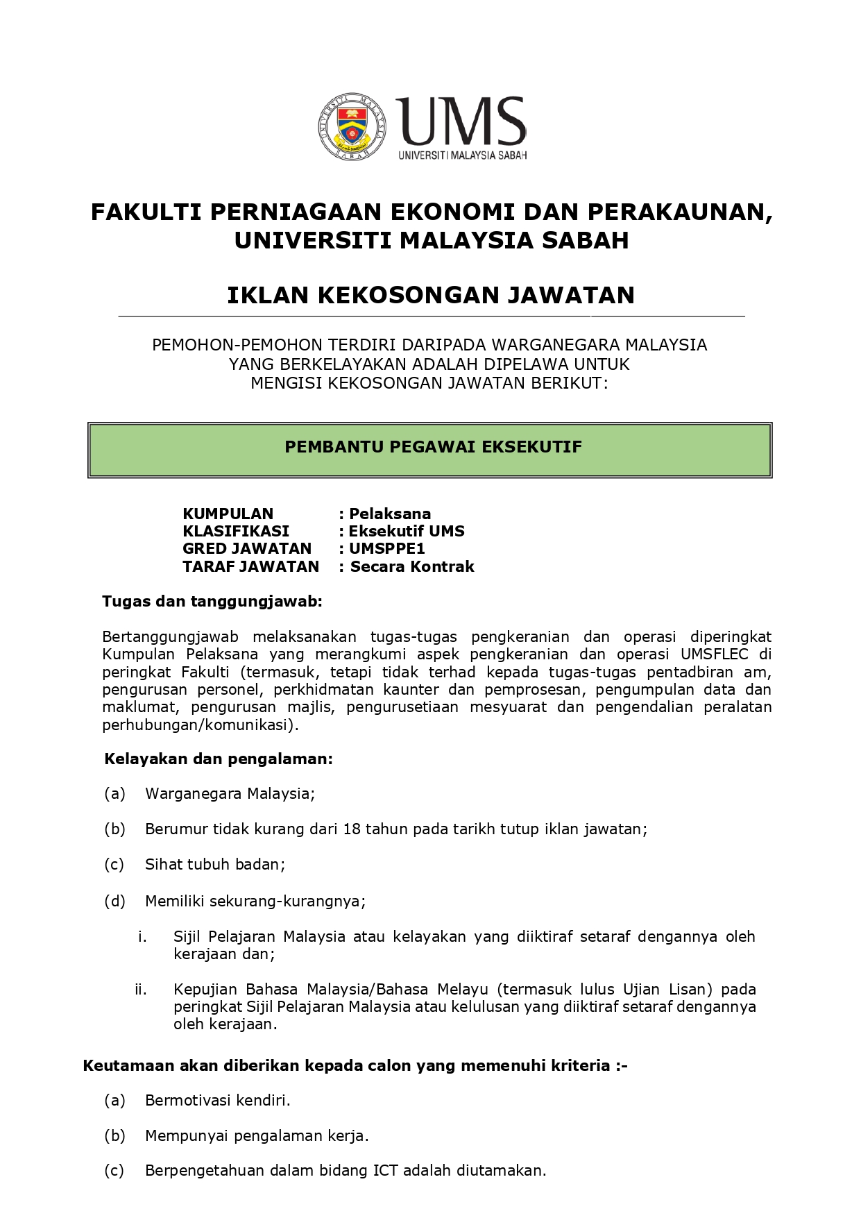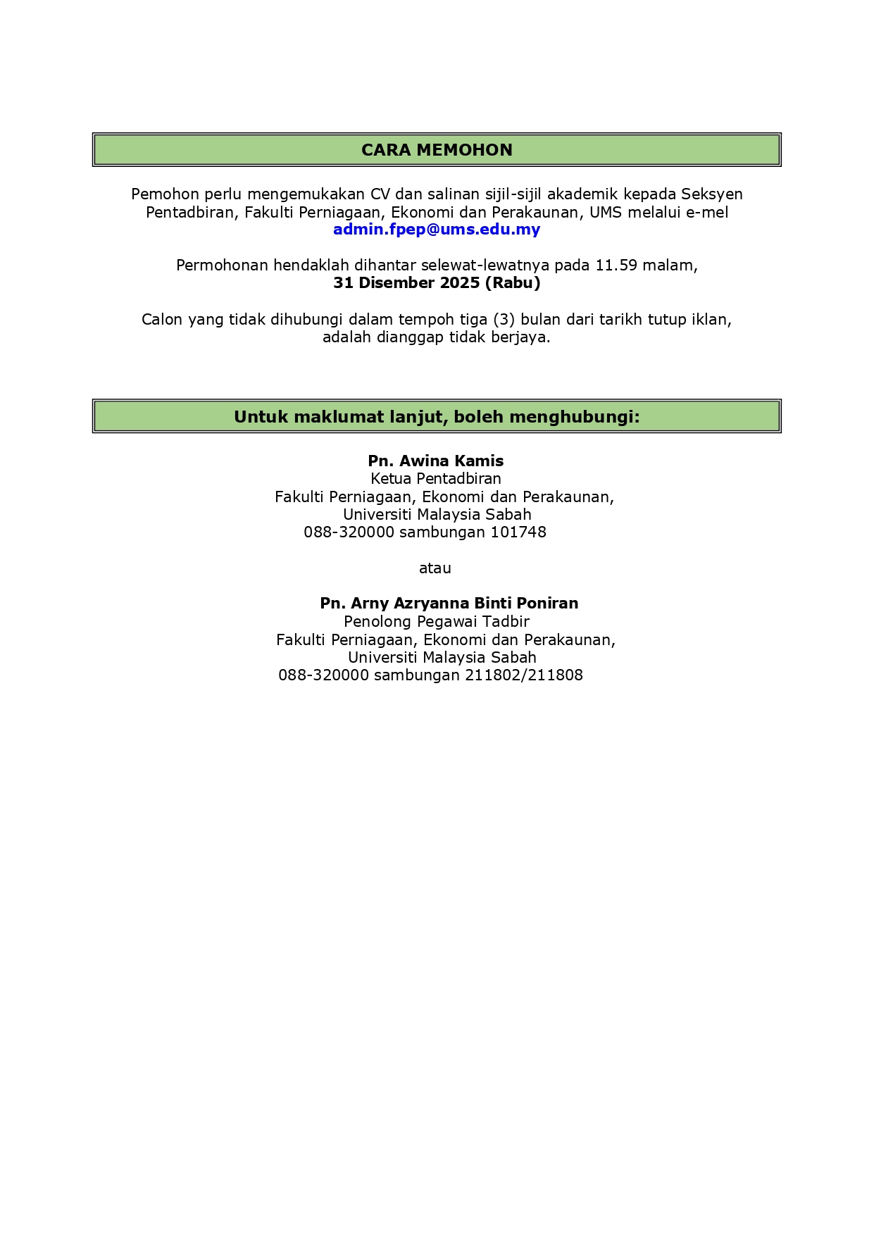Pengumuman Daripada: Fakulti Perniagaan, Ekonomi dan Perakaunan