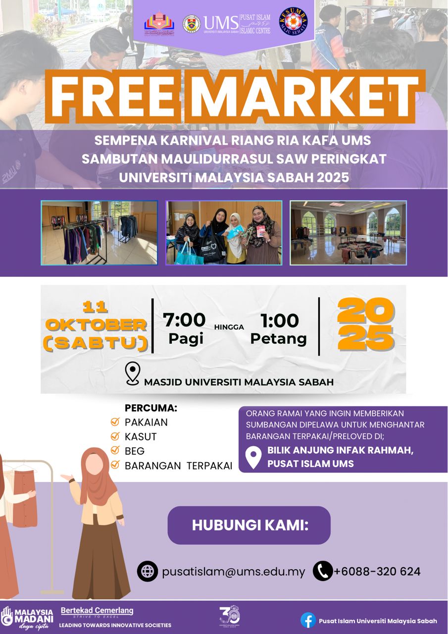 Sukacita dimaklumkan bahawa Pusat Islam Universiti Malaysia Sabah (UMS) kini membuka peluang kepada warga universiti untuk menyertai program Infak HELWA melalui potongan gaji bulanan.
