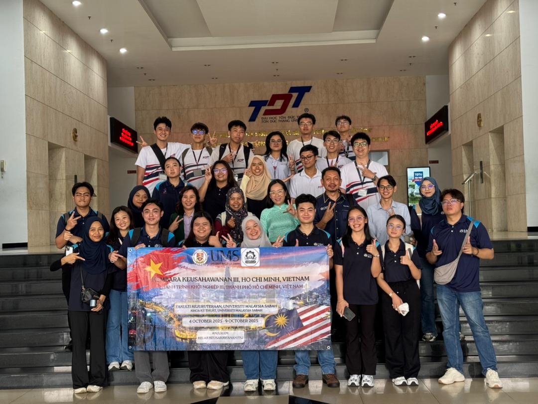 Seramai 15 pelajar Fakulti Kejuruteraan Universiti Malaysia Sabah (UMS) berjaya menjayakan Program Kembara Keusahawanan III di Universiti Ton Duc Thang (TDTU), Bandaraya Ho Chi Minh, Vietnam, sekali gus membuktikan keupayaan mahasiswa UMS melaksanakan program bertaraf antarabangsa dengan cemerlang.
