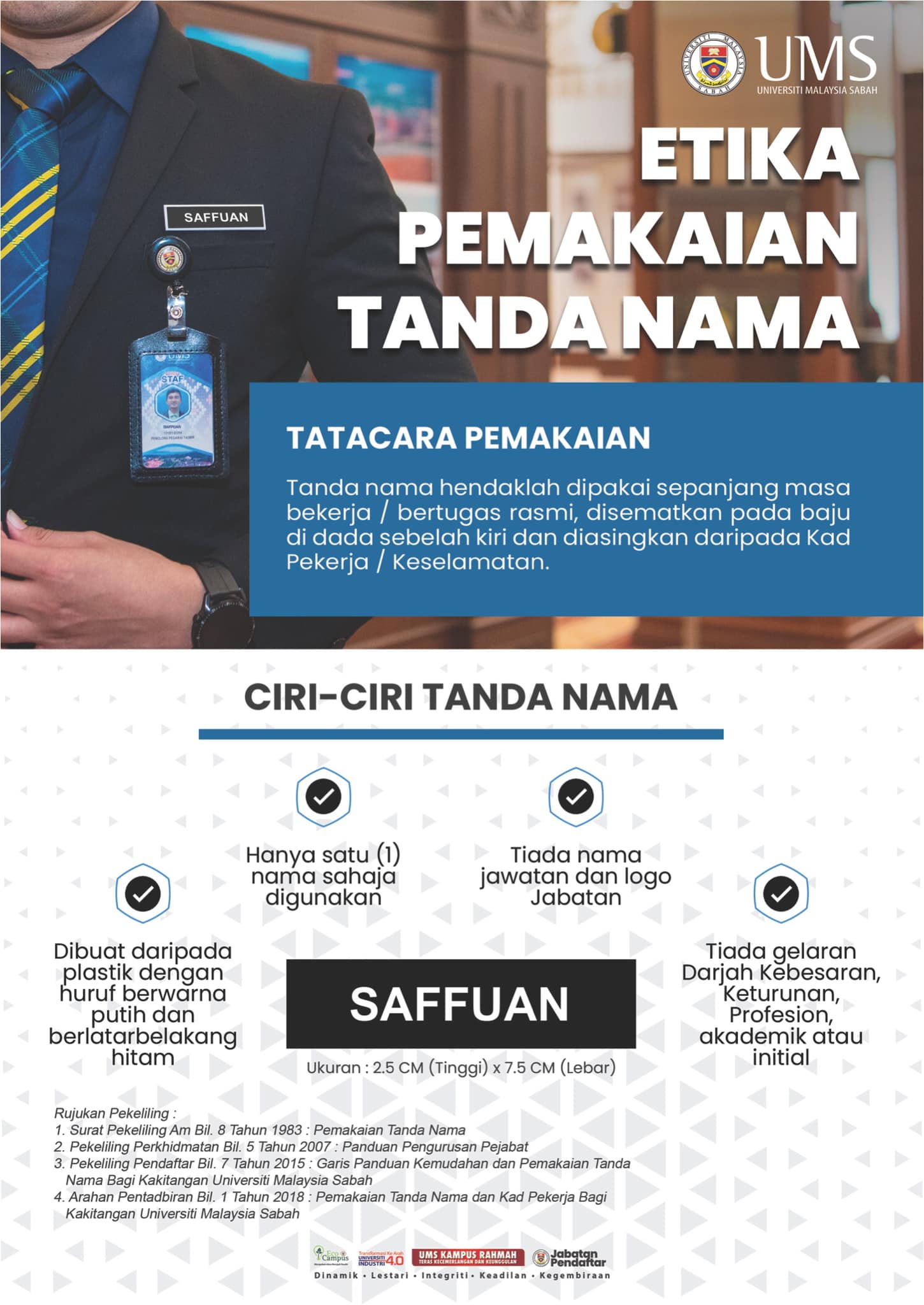 ETIKA PEMAKAIAN TANDA NAMA BAGI RUJUKAN KAKITANGAN UNIVERSITI MALAYSIA SABAH.