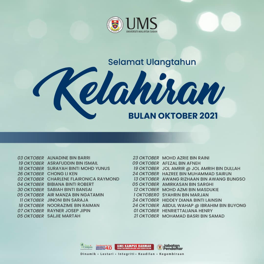 Oktober babies! Selamat ulangtahun kelahiran diucapkan kepada kakitangan Jabatan Pendaftar yang lahir pada bulan ini.