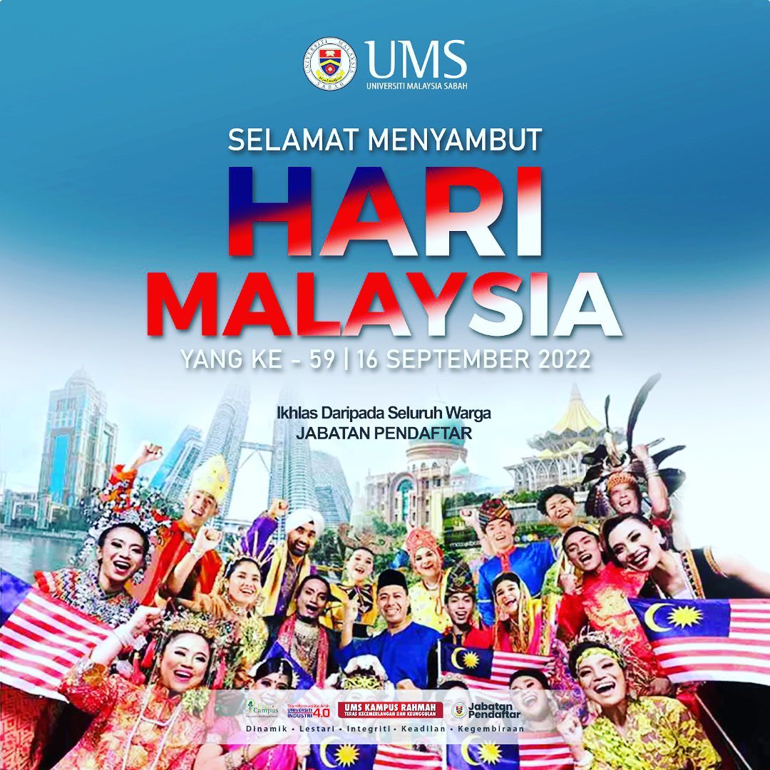 Selamat menyambut Hari Malaysia yang ke-59 kepada seluruh warga UMS khususnya dan seluruh rakyat Malaysia amnya.