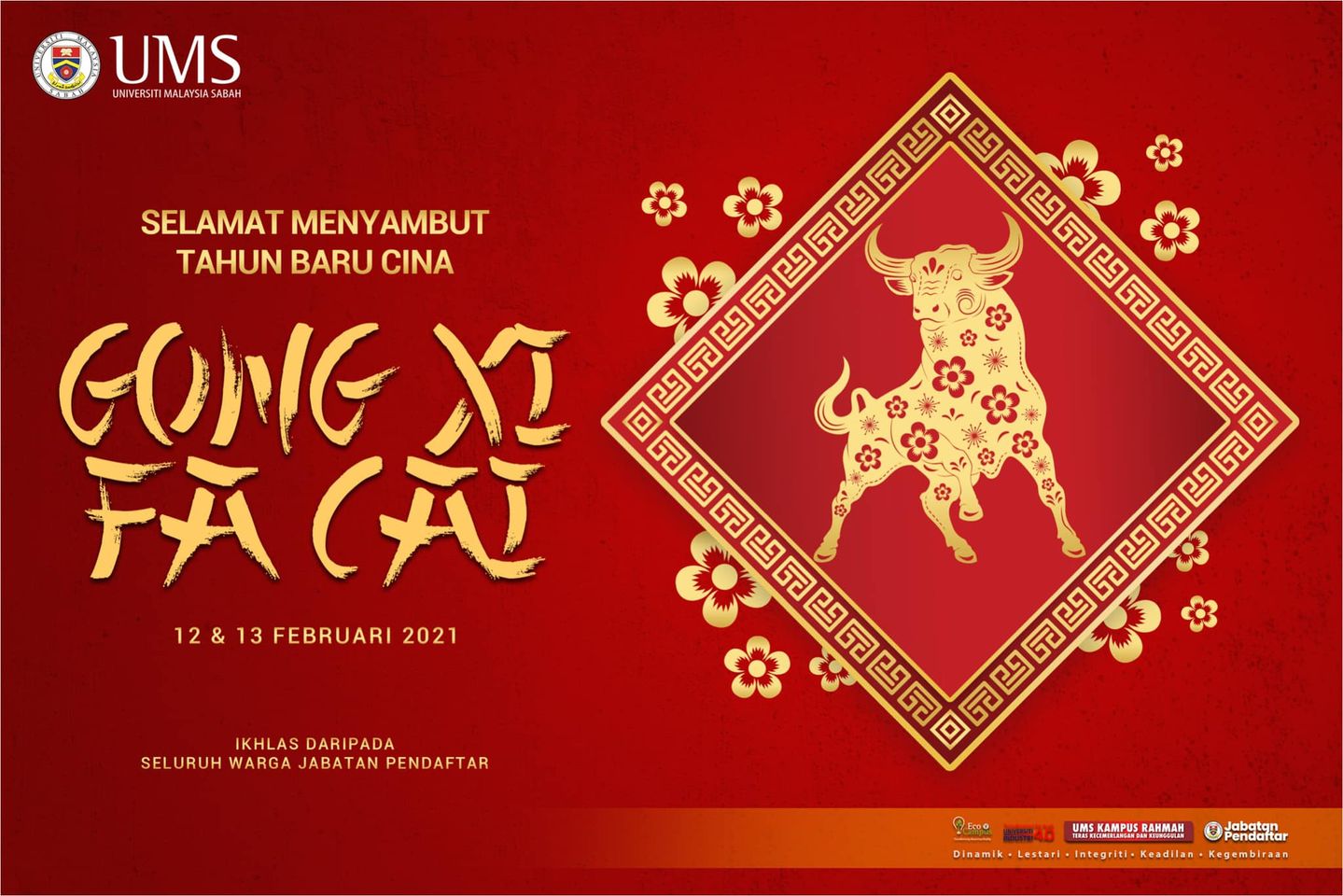 Jabatan Pendaftar mengucapkan selamat menyambut perayaan Tahun Baru Cina kepada warga UMS yang meraikannya.