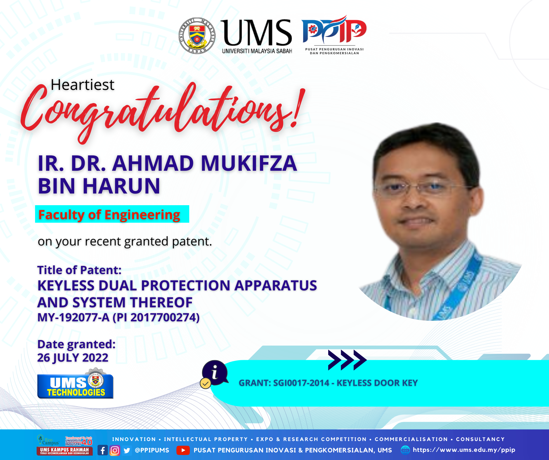 Congratulations, Assoc. Prof. Ir. Dr. Muralindran Mariappan and Ir. Dr. Ahmad Mukifza Bin Harun, on your recently granted patent!