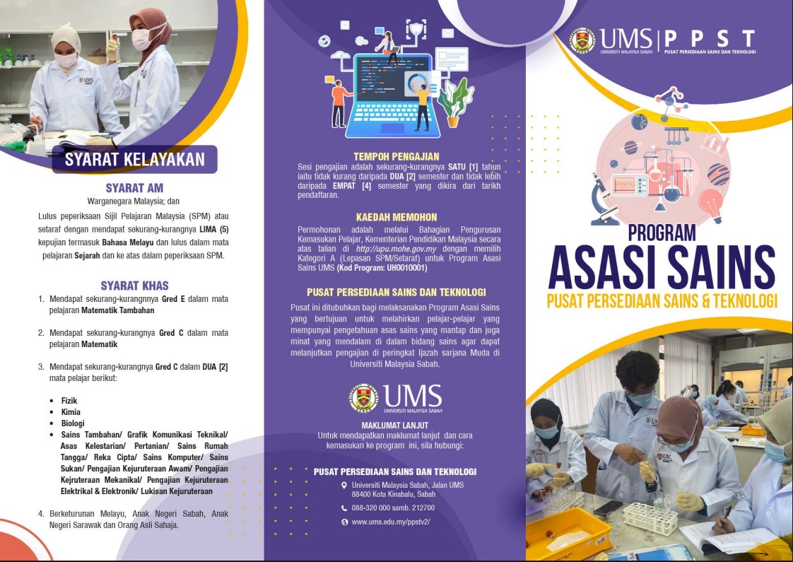 Student who have completed their studies and passed accordingly to the standards determined at the Preparatory Centre for Science and Technology will continue to further their undergraduate studies for the award of Bachelor's Degree with Honours at the Universiti Malaysia Sabah ONLY.