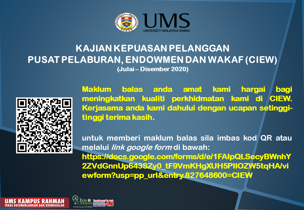 16 Disember 2020 Jumlah paparan: 1260 Kajian Kepuasan Pelanggan, Pusat Pelaburan, Endowmen dan Wakaf (CIEW) Cetak Emel Pengumuman daripada: Pusat Pelaburan, Endowmen Dan Wakaf (CIEW)