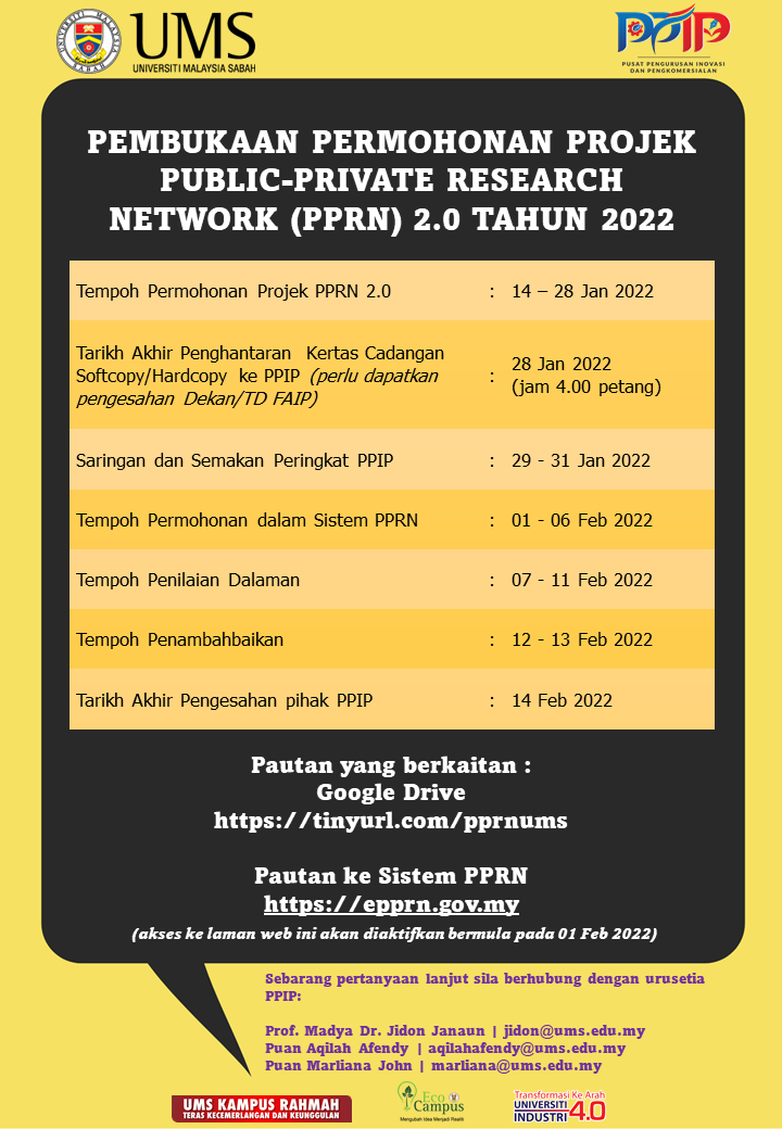 PEMBUKAAN PERMOHONAN PROJEK PUBLIC-PRIVATE RESEARCH NETWORK 2.0 (PPRN) BAGI TAHUN 2022