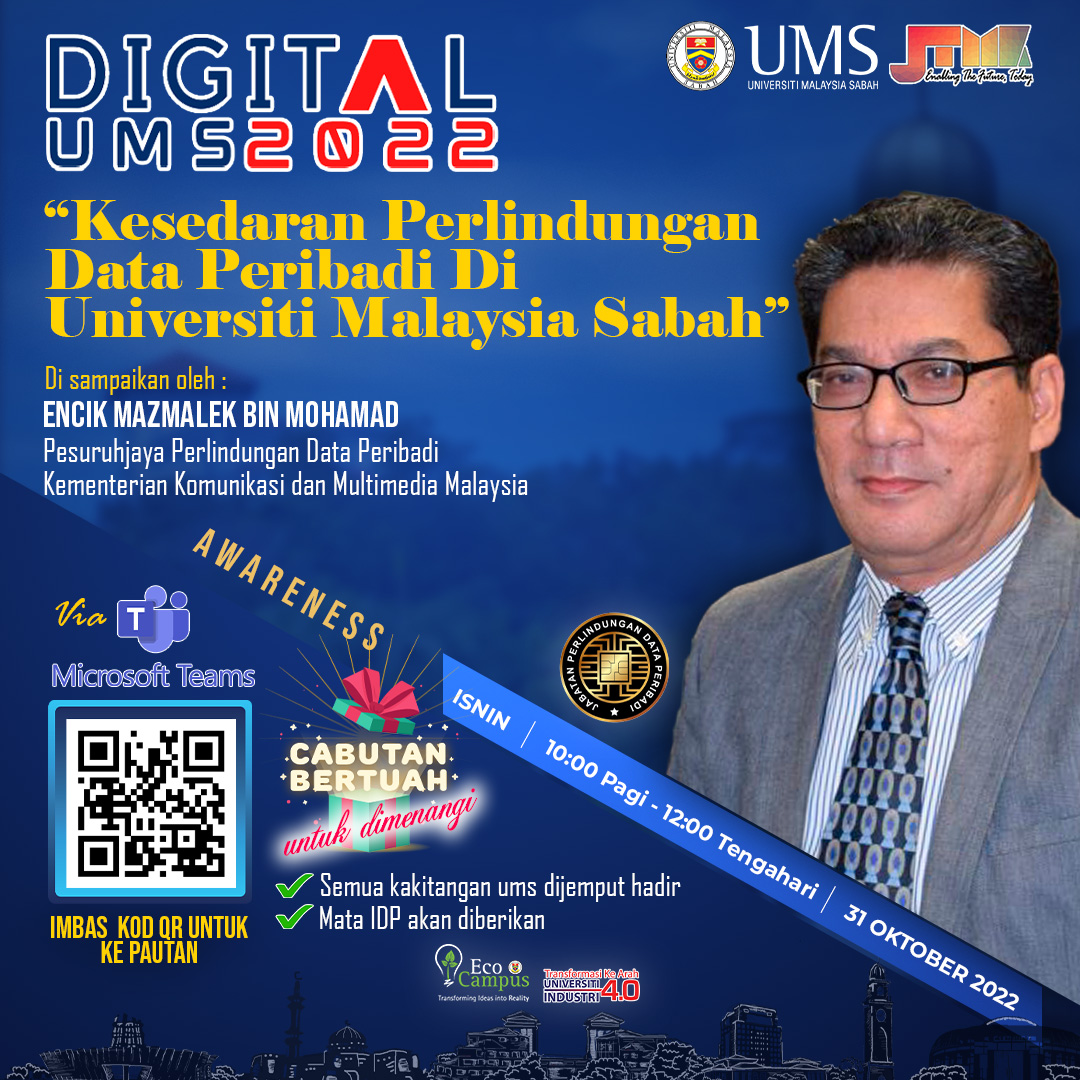 28 Oktober 2022 Jumlah paparan: 923 Kesedaran Perlindungan Data Peribadi di Universiti Malaysia Sabah Cetak Emel Pengumuman Daripada: Jabatan Teknologi Maklumat dan Komunikasi