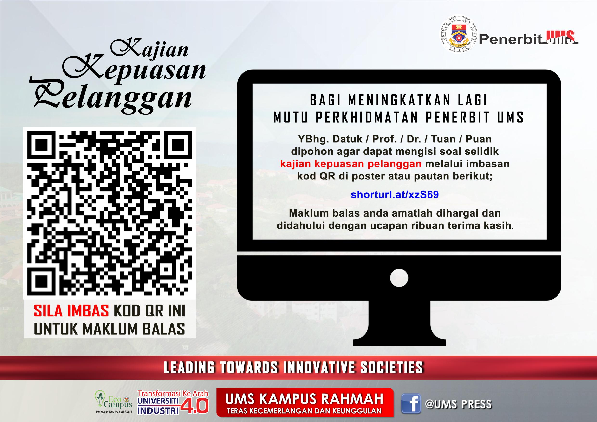 Bagi meningkatkan mutu perkhidmatan kami secara berterusan, YBhg. Prof. Datuk/Prof./Dr./Tuan/Puan adalah dipohon agar dapat mengisi soal selidik kajian kepuasan pelanggan Penerbit UMS melalui imbasan kod QR di poster atau pautan berikut;