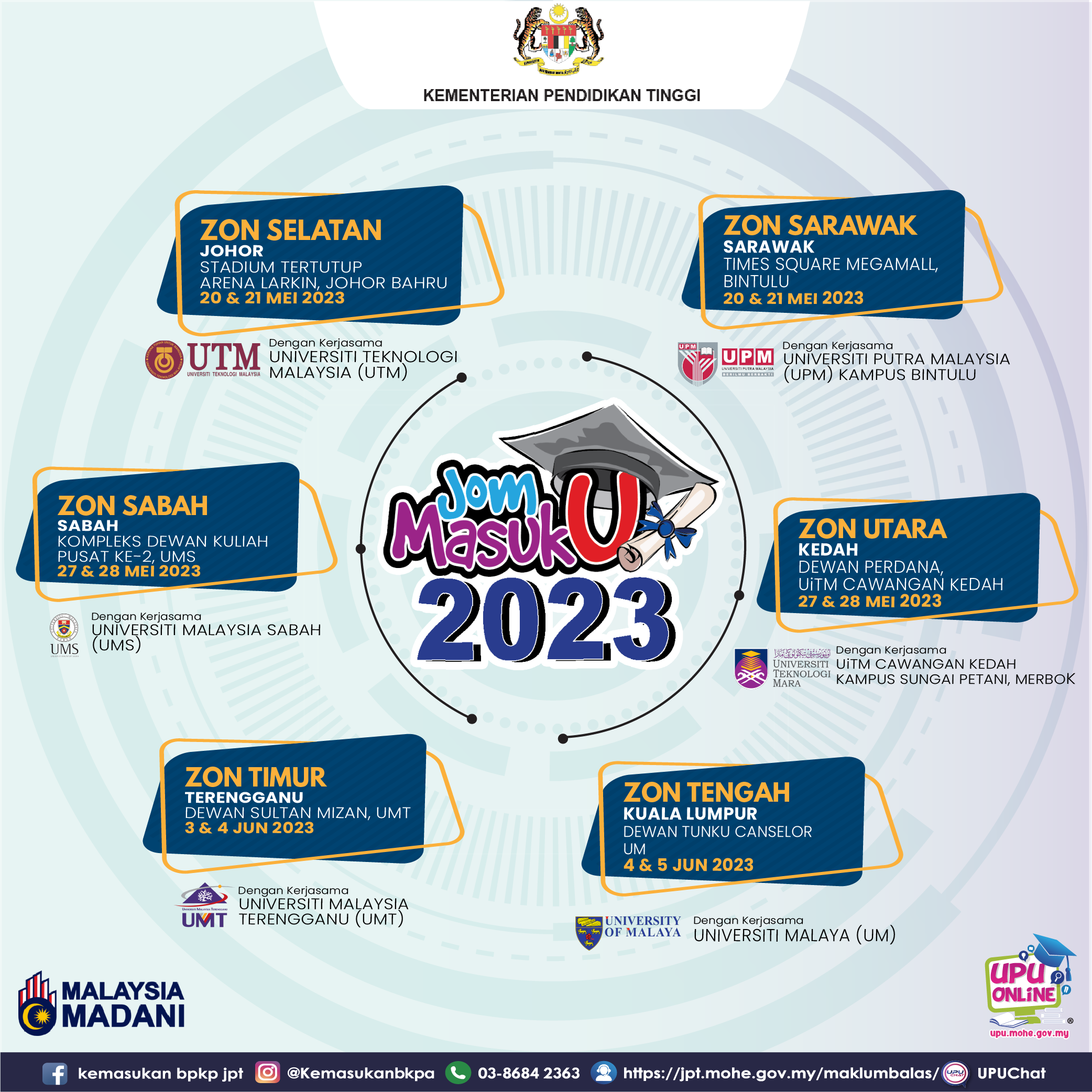 Jom ramai-ramai datang ke Program Jom Masuk U 2023 di enam (6) zon bermula 20 Mei - 5 Jun 2023