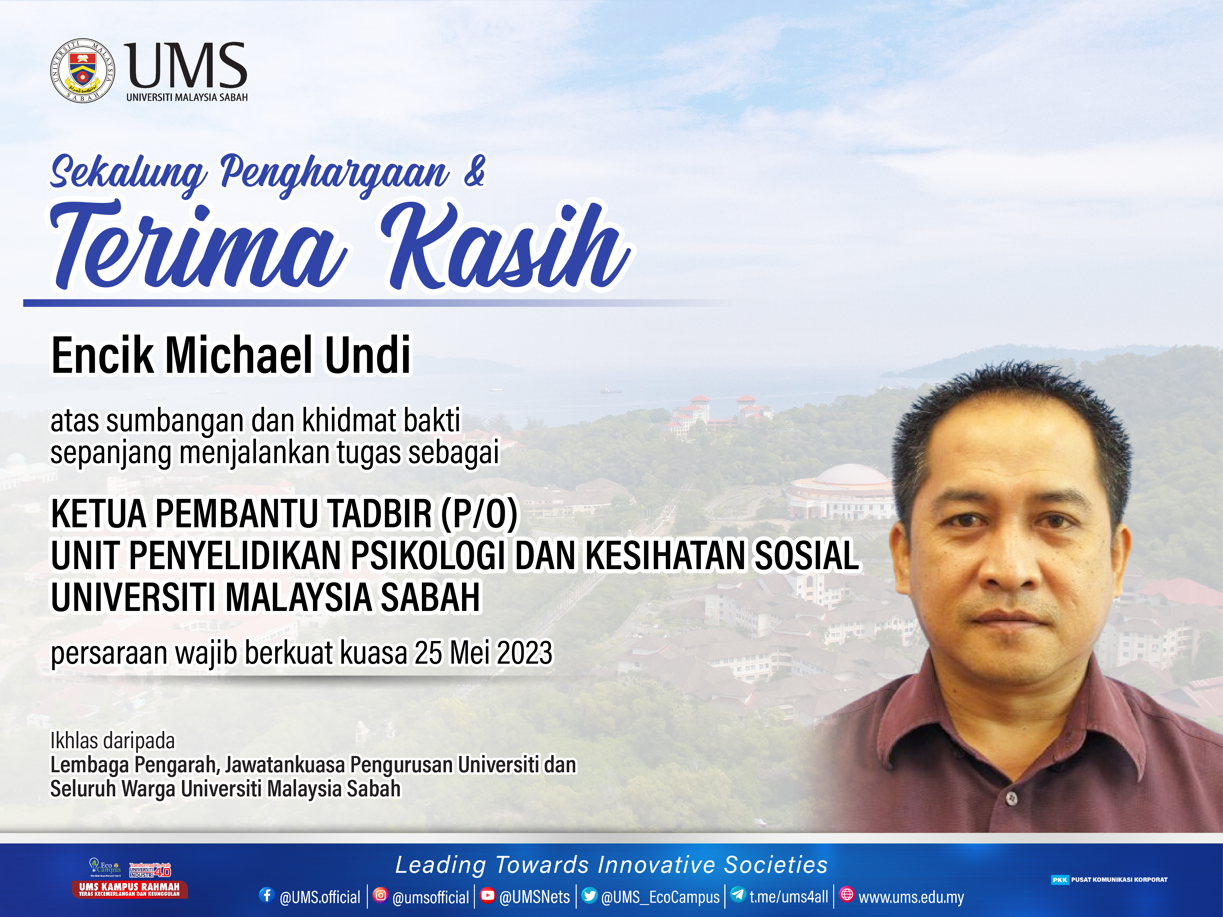 Sekalung Penghargaan dan Ucapan Terima Kasih kepada Kakitangan UMS yang Telah Bersara