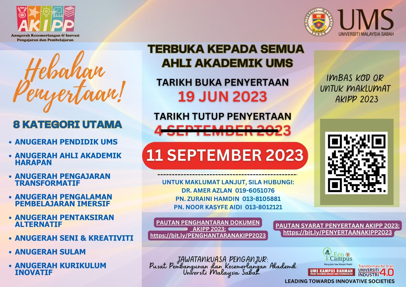 Pelawaan penyertaan ahli akademik UMS dalam Anugerah Kecemerlangan dan Inovasi Pengajaran & Pembelajaran (AKIPP) Tahun 2023