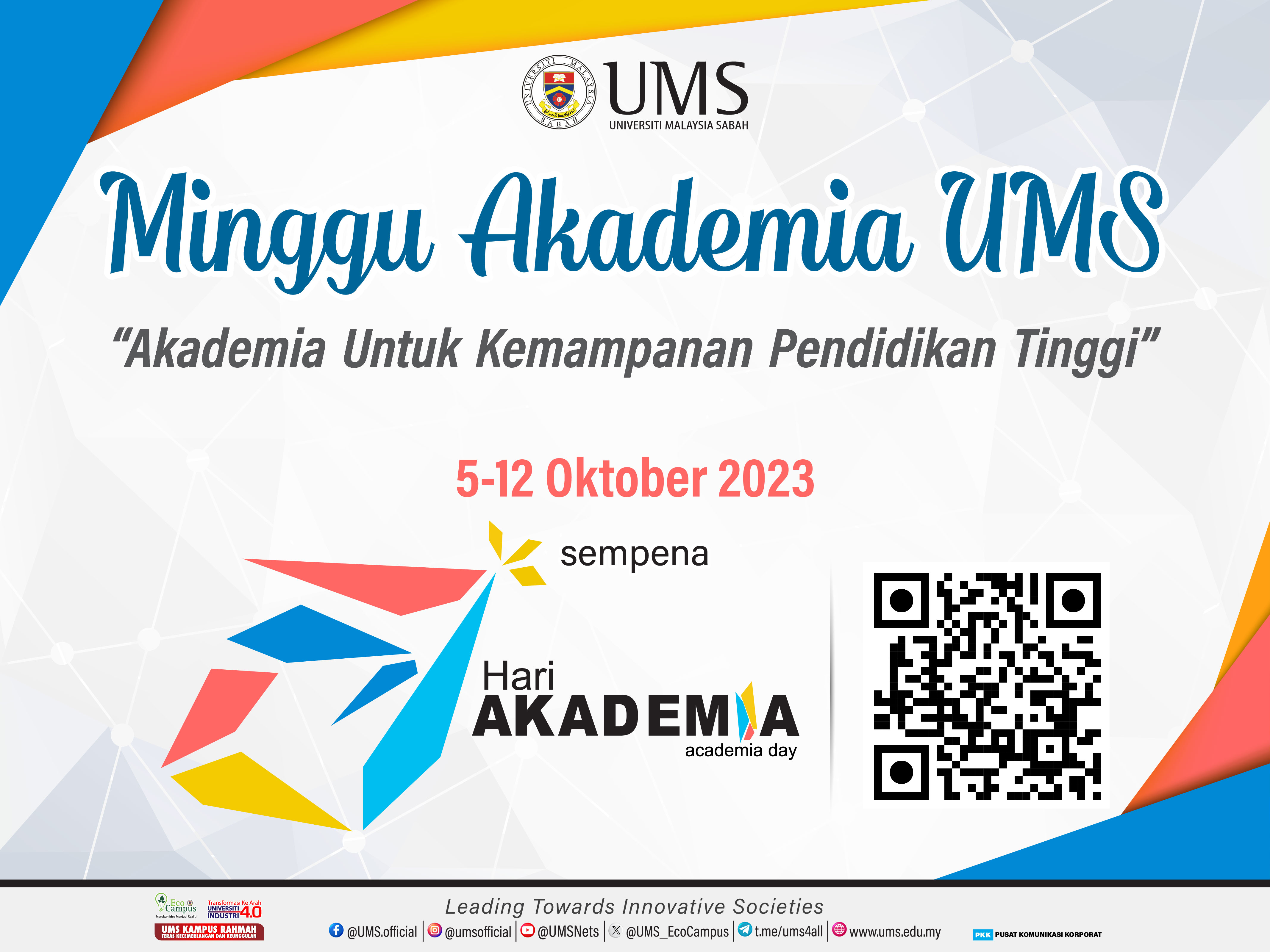 02 Oktober 2023 Jumlah paparan: 1007 Minggu Akademia UMS "Akademia Untuk Kemampanan Pendidikan Tinggi" Cetak Emel Pengumuman Daripada: Pusat Pembangunan Dan Kecemerlangan Akademik
