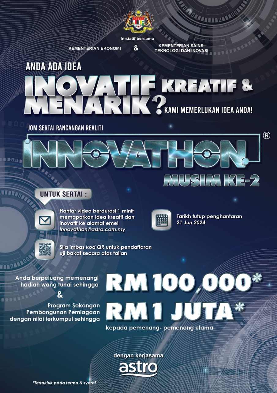 24 Mei 2024 Jumlah paparan: 670 Hebahan Innovathon Inisiatif Bersama Kementerian Ekonomi dan Kementerian Sains, Teknologi dan Inovasi dengan Kerjasama Astro Cetak Emel Pengumuman Daripada: Pusat Pengurusan Penyelidikan