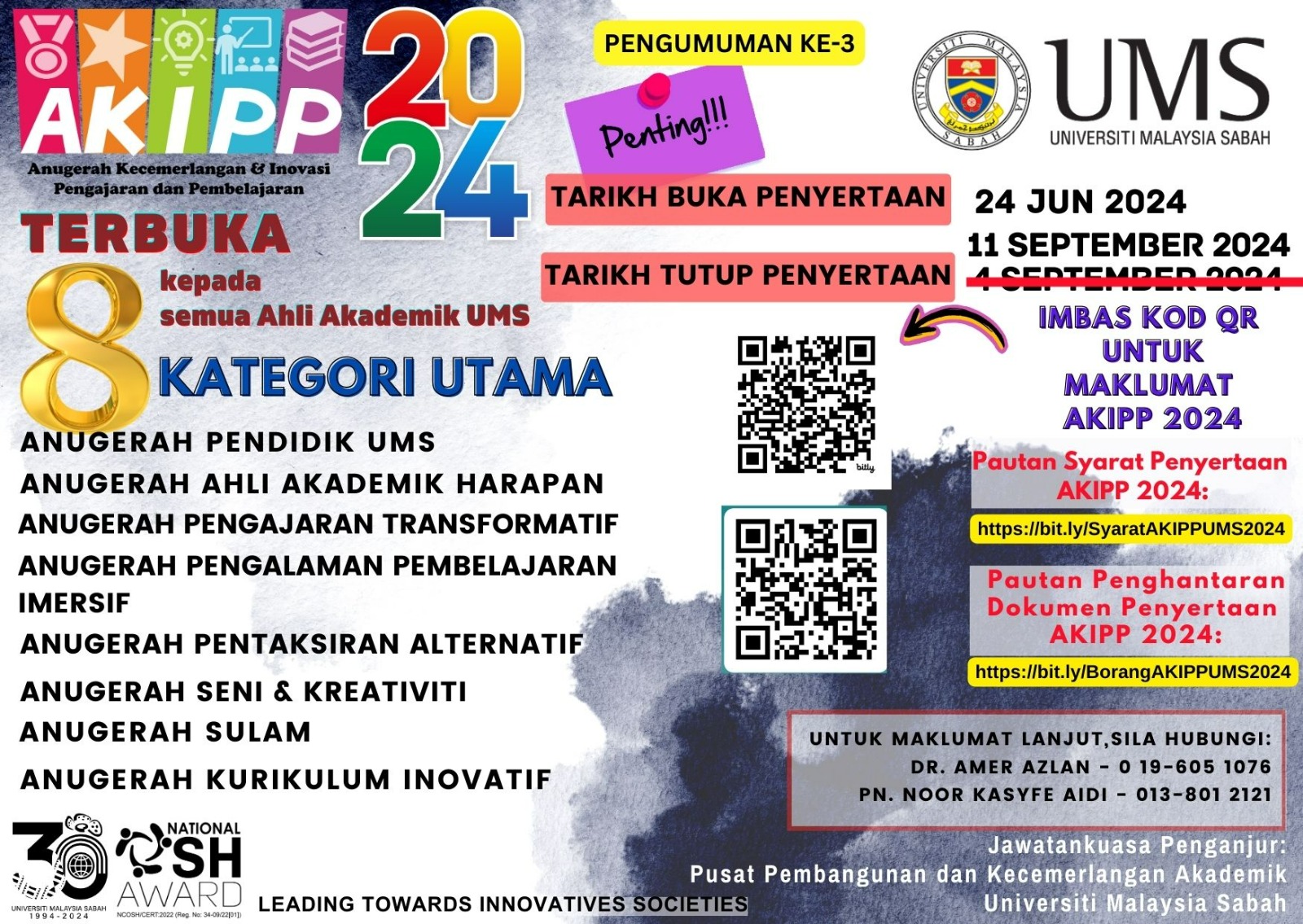 Pelawaan penyertaan ahli akademik Universiti Malaysia Sabah dalam Anugerah Kecemerlangan & Inovasi Pengajaran dan Pembelajaran (AKIPP) Tahun 2024