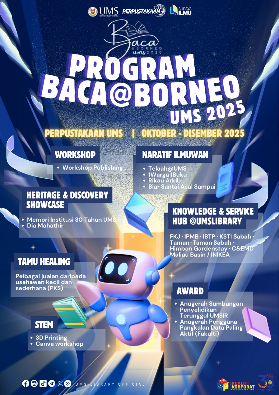 Datang dan sertai pelbagai aktiviti menarik di Perpustakaan UMS dari Oktober hingga Disember 2025.