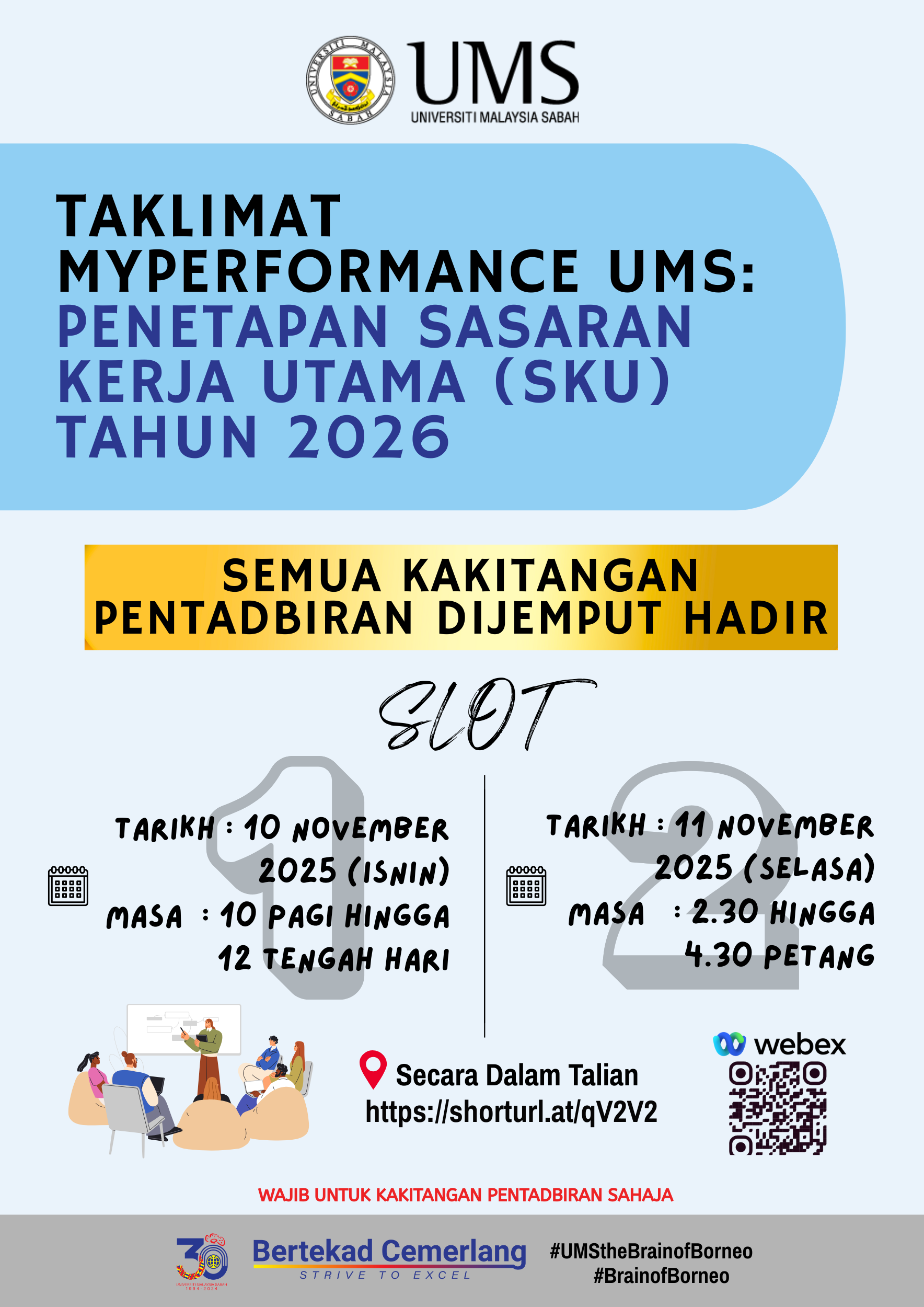 Kehadiran adalah WAJIB untuk semua kakitangan pentadbiran sahaja.