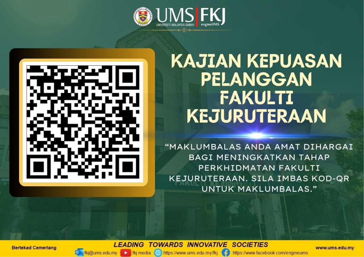 Bagi meningkatkan lagi kualiti perkhidmatan FKJ, dimohon YBhg. Datuk/Prof./Sr./Ir./Ts./Dr./tuan/puan untuk mengisi soal selidik kajian kepuasan pelanggan melalui pautan atau imbas kod QR seperti berikut: