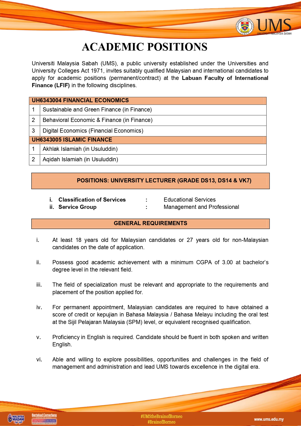 | Iklan Pengambilan Jawatan Kakitangan Akademik Fakulti Kewangan Antarabangsa Labuan |