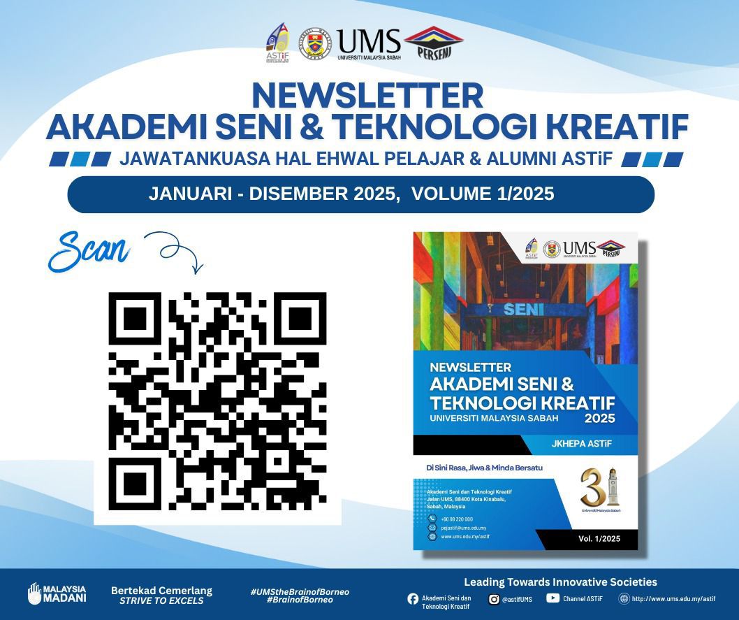 Tahun 2025 menjadi saksi kepada perjalanan Akademi Seni dan Teknologi Kreatif (ASTiF), Universiti Malaysia Sabah dalam mengangkat seni sebagai bahasa perubahan dan kemanusiaan. Sepanjang tahun ini, ratusan program seni, akademik dan kemasyarakatan telah digerakkan dengan penuh komitmen, menyatukan pelajar, pensyarah, alumni dan rakan industri dalam satu ekosistem kreatif yang hidup dan berdenyut.