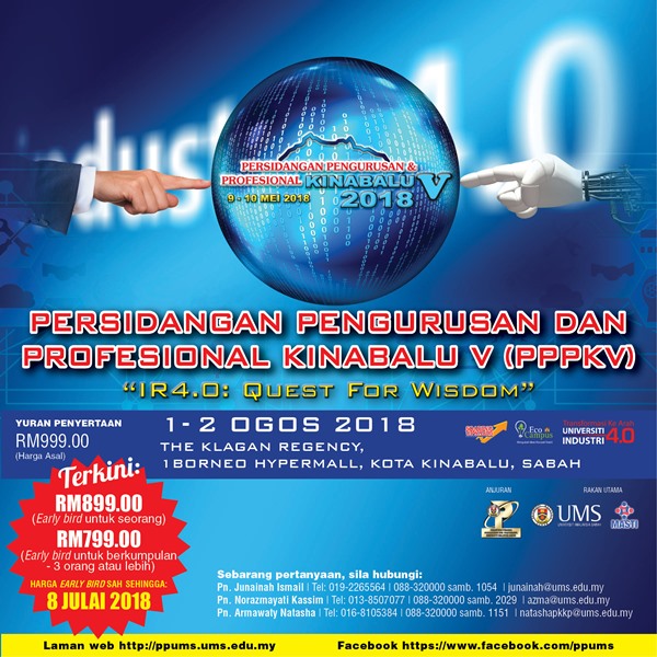 Persidangan Pengurusan dan Profesional Kinabalu V (PPPKV): IR4.0: Quest For Wisdom yang dijadualkan berlangsung pada 9-10 Mei 2018 telah DITUNDA ke