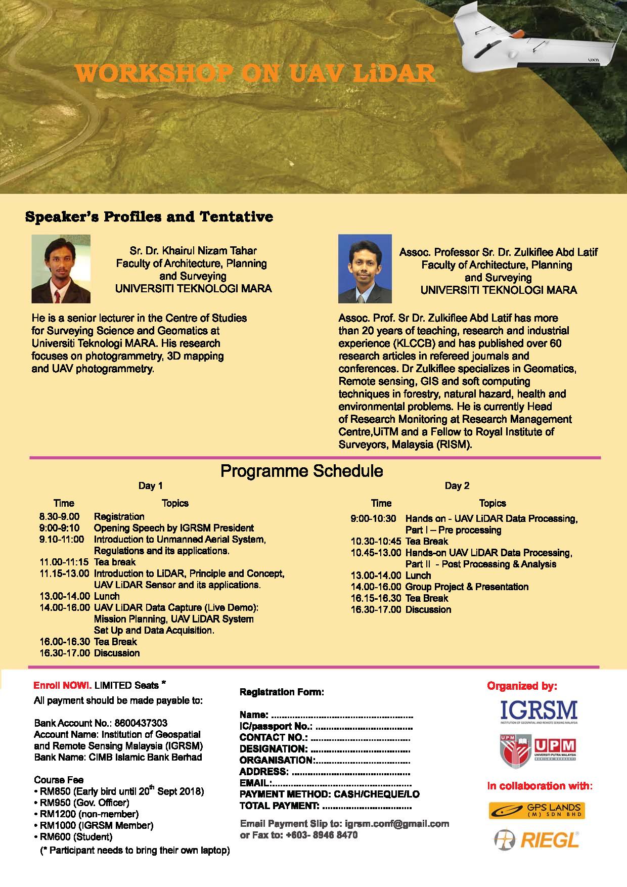 30 Ogos 2018 Jumlah paparan: 1676 "WORKSHOP ON UAV LiDAR" Cetak Emel PENGUMUMAN DARIPADA : PUSAT PENYELIDIKAN DAN INOVASISUBJEK : "WORKSHOP ON UAV LiDAR"
