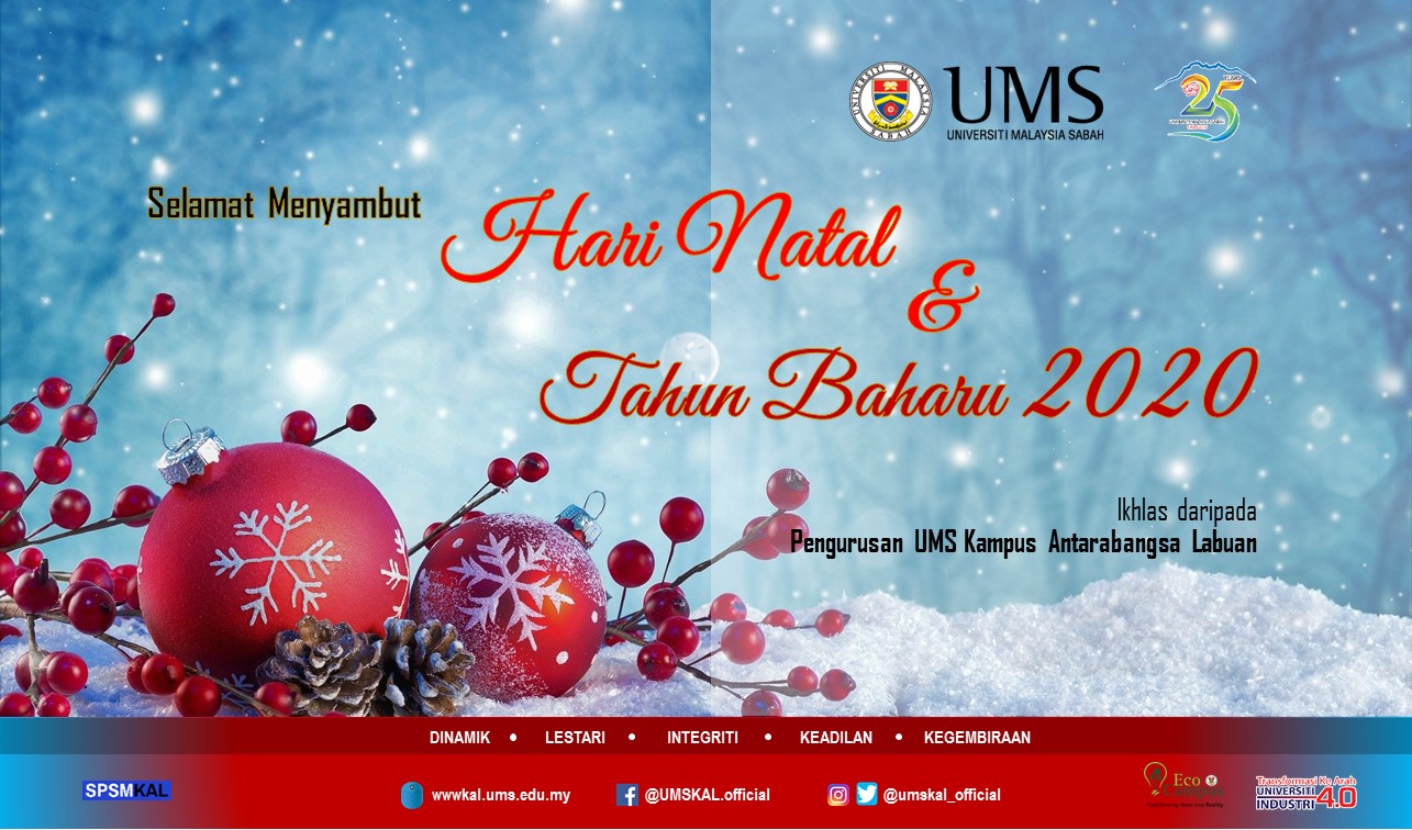 23 Disember 2019 Jumlah paparan: 3709 Ucapan Selamat Menyambut Hari Krismas dan Tahun Baru 2020 Cetak Emel Daripada: Fakulti Perubatan dan Sains Kesihatan | UMSKAL | Pejabat Penasihat Undang - Undang