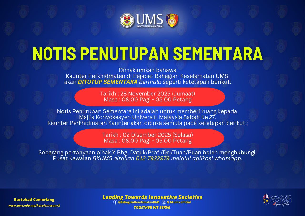 📢 UMS Library Closure Notice In Conjunction with the Sabah State Election on 29 November 2025 (Saturday)