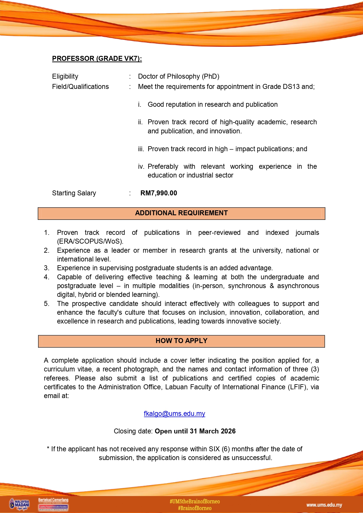 Pusat Pengurusan Strategik (Strategi@UMS), Universiti Malaysia Sabah membuka peluang latihan industri bagi tahun 2026 kepada graduan dan pelajar tahun akhir!