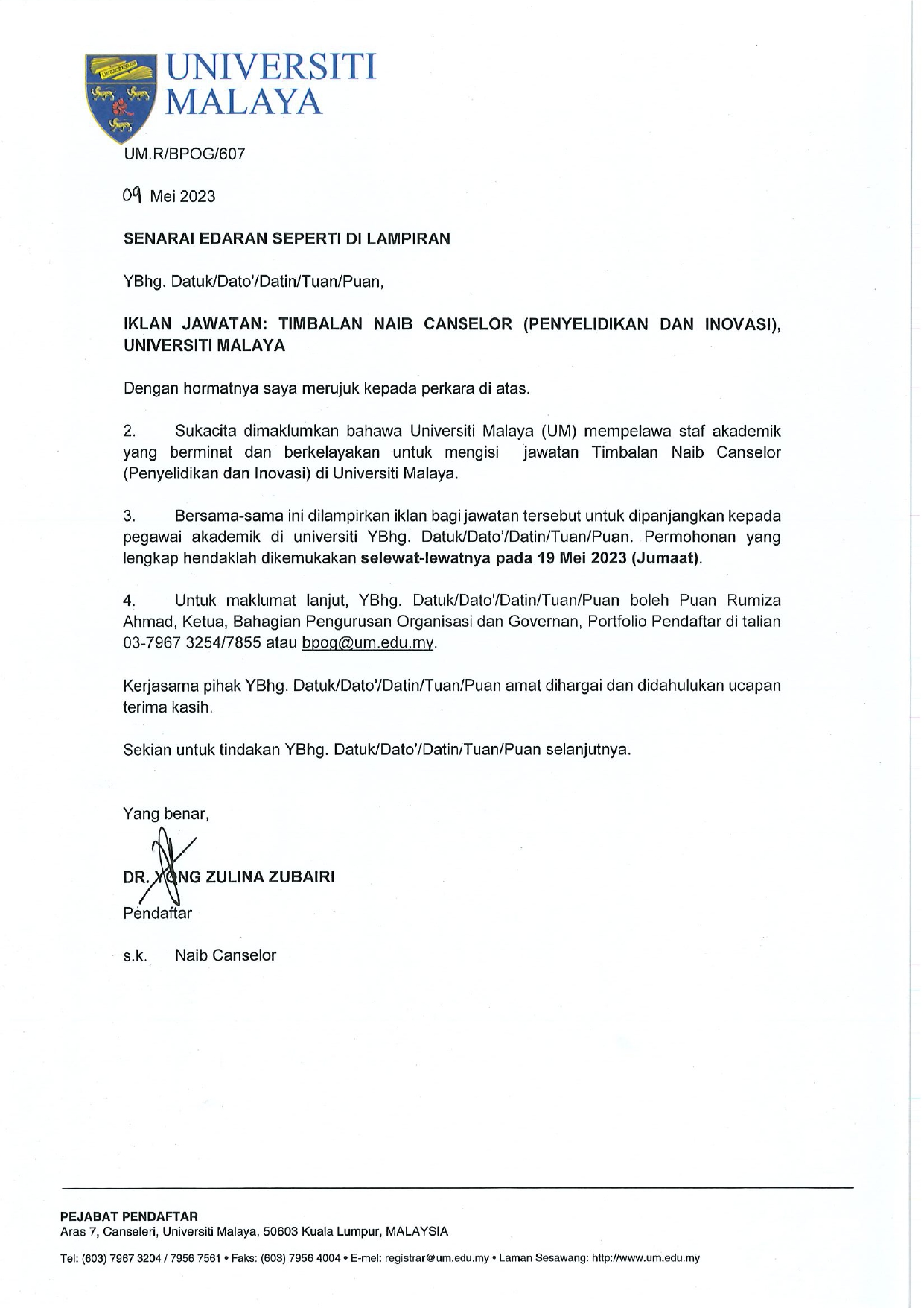 Pengumuman Daripada: Bahagian Pengurusan Sumber Manusia