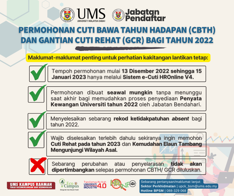 Pengumuman Daripada: Bahagian Pengurusan Sumber Manusia (BPSM), Jabatan Pendaftar