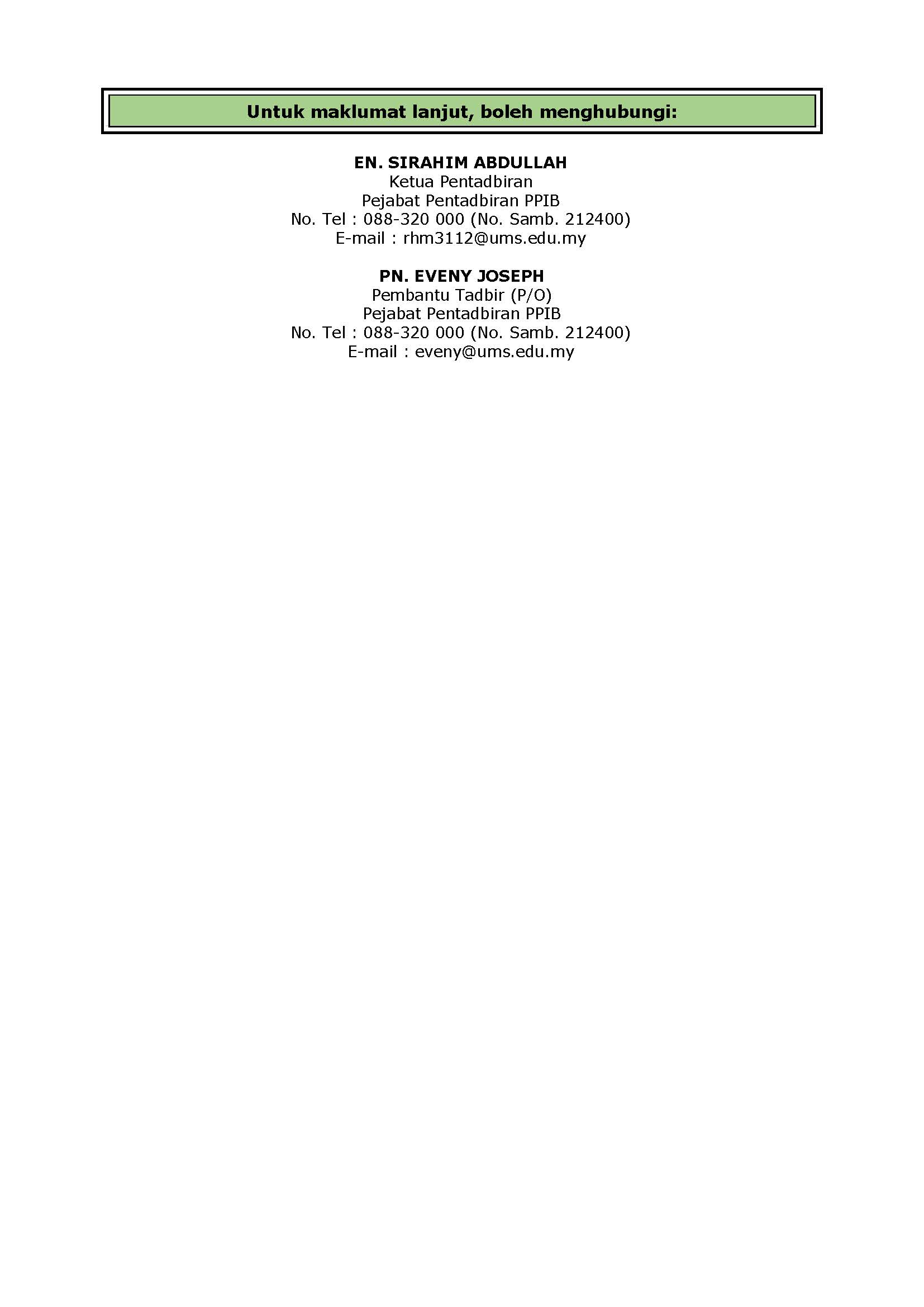 atau untuk info lanjut sila hubungi kami di talian: