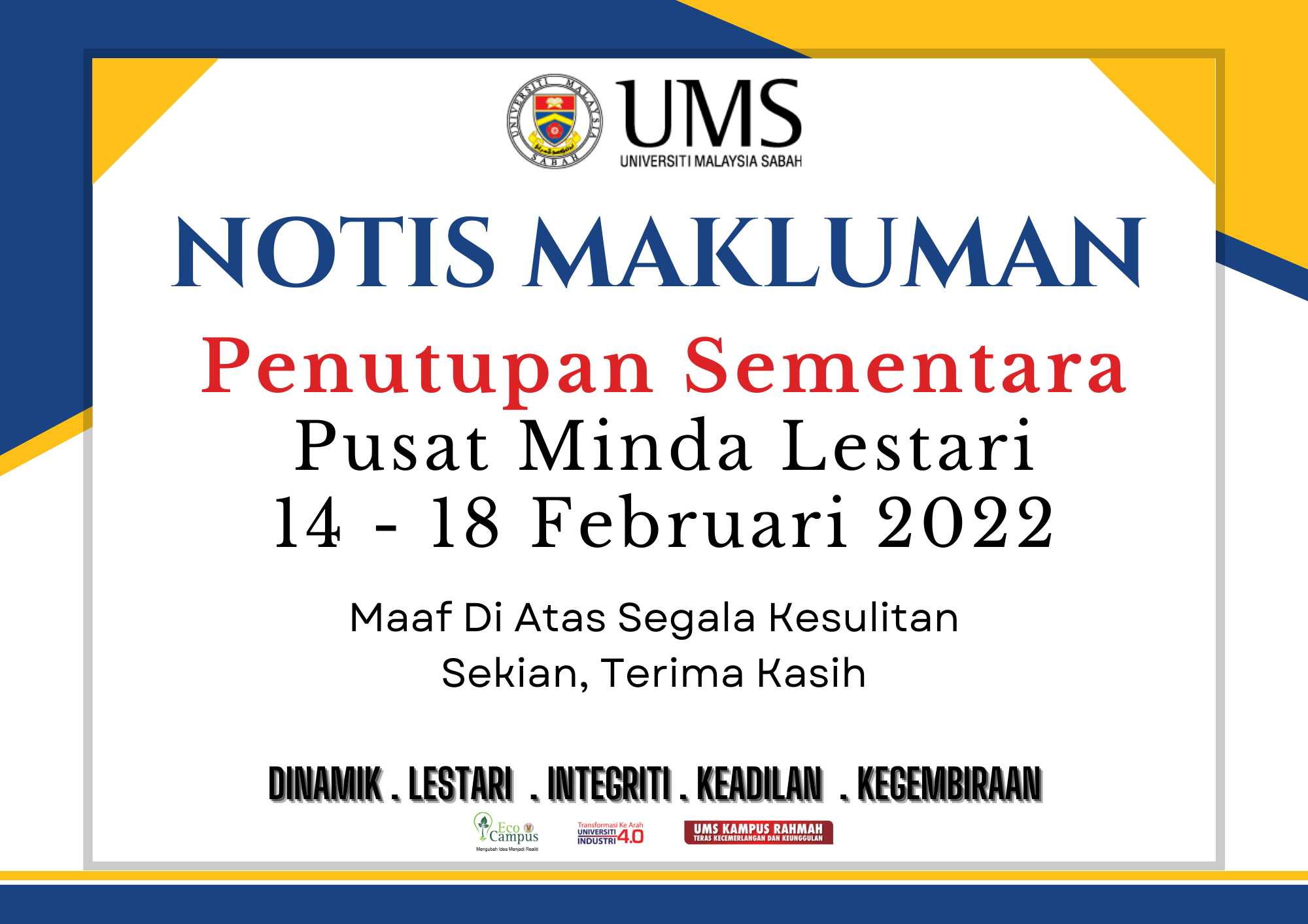 ✅ Semua Kakitangan UMS dan pelajar dijemput hadir