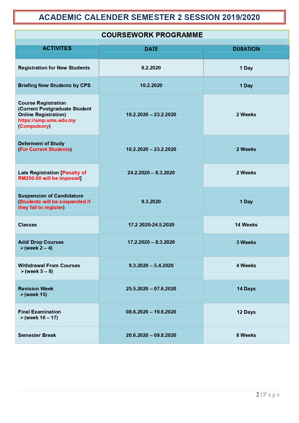 Important Dates: