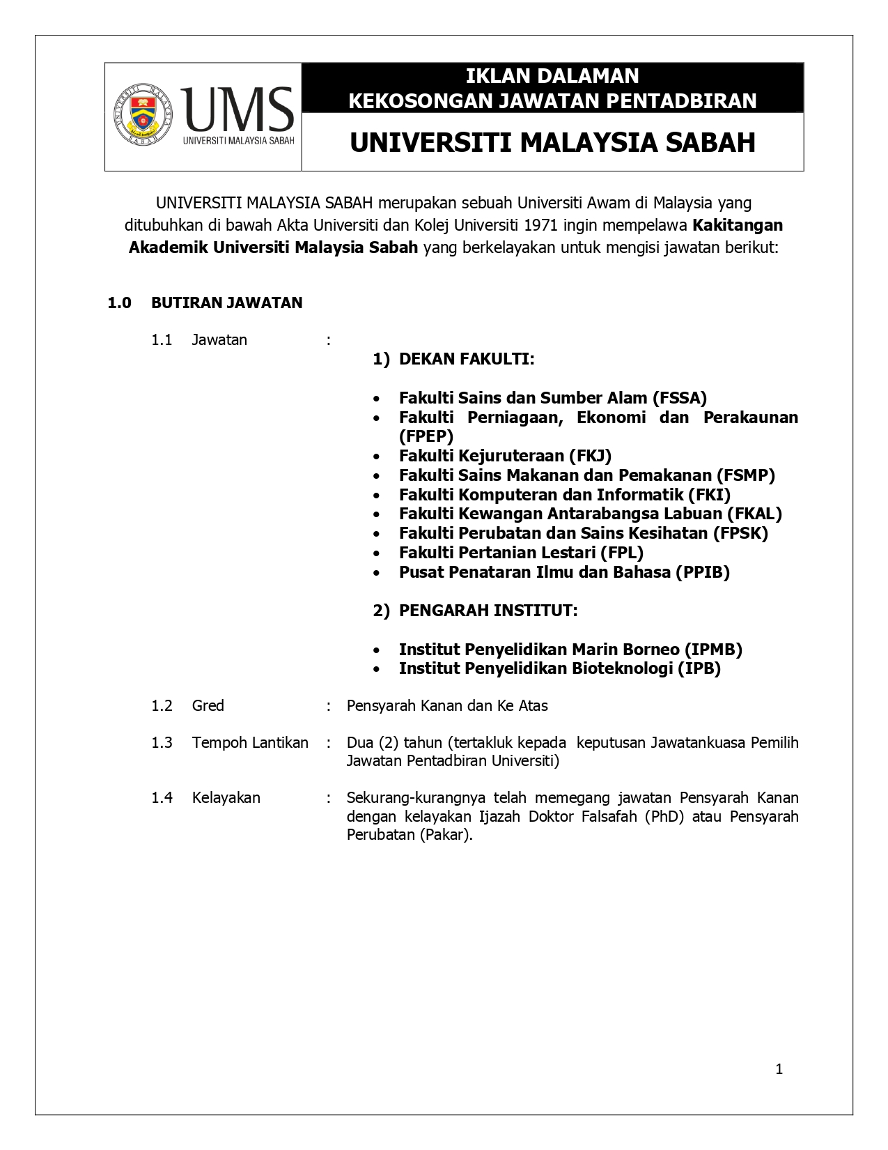 Pengumuman Daripada : Fakulti Sains dan Sumber Alam (FSSA)