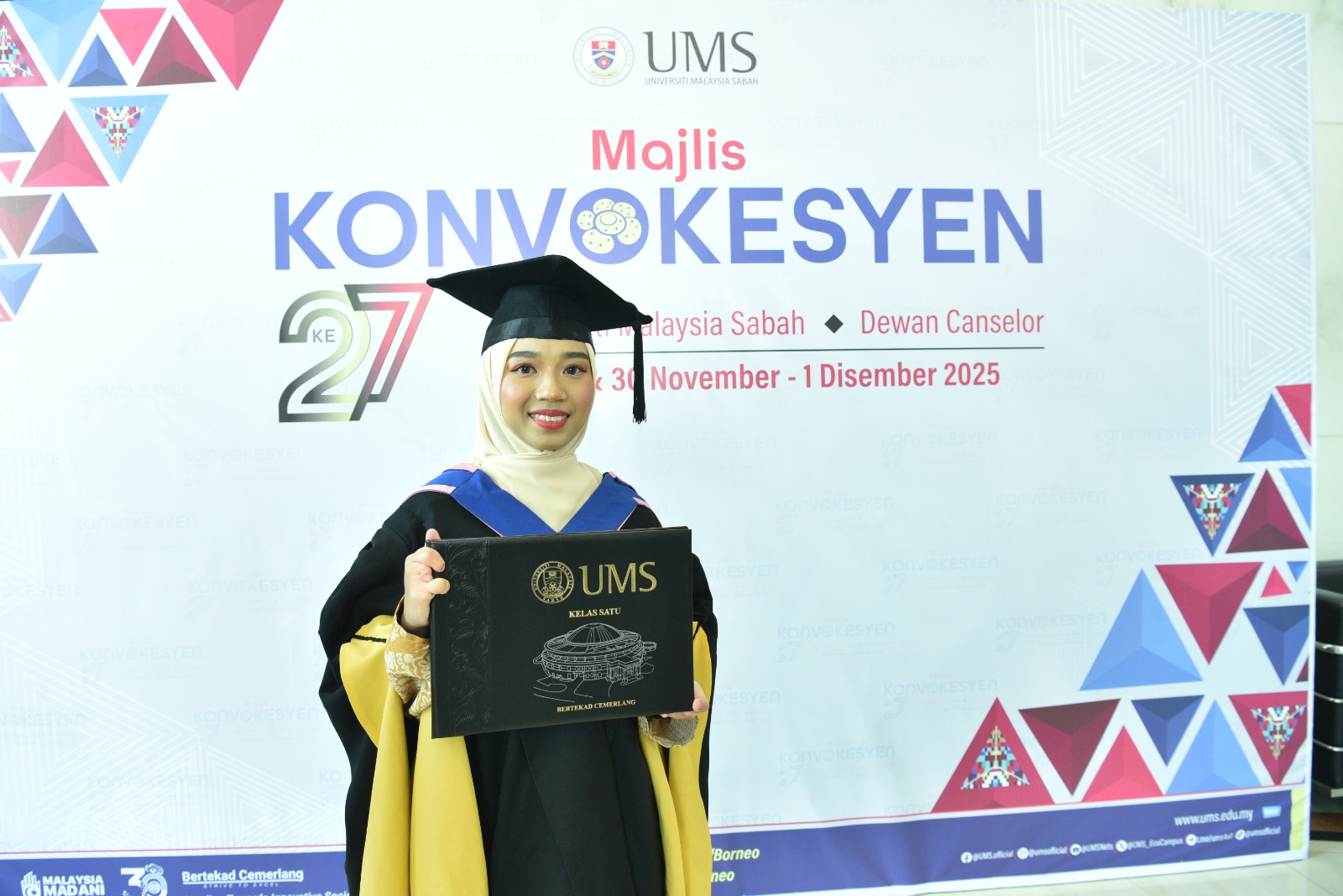 Sepanjang menjalani pengajian di UMS, beliau memperlihatkan komitmen luar biasa dalam mengimbangi cabaran fizikal dengan tuntutan akademik.