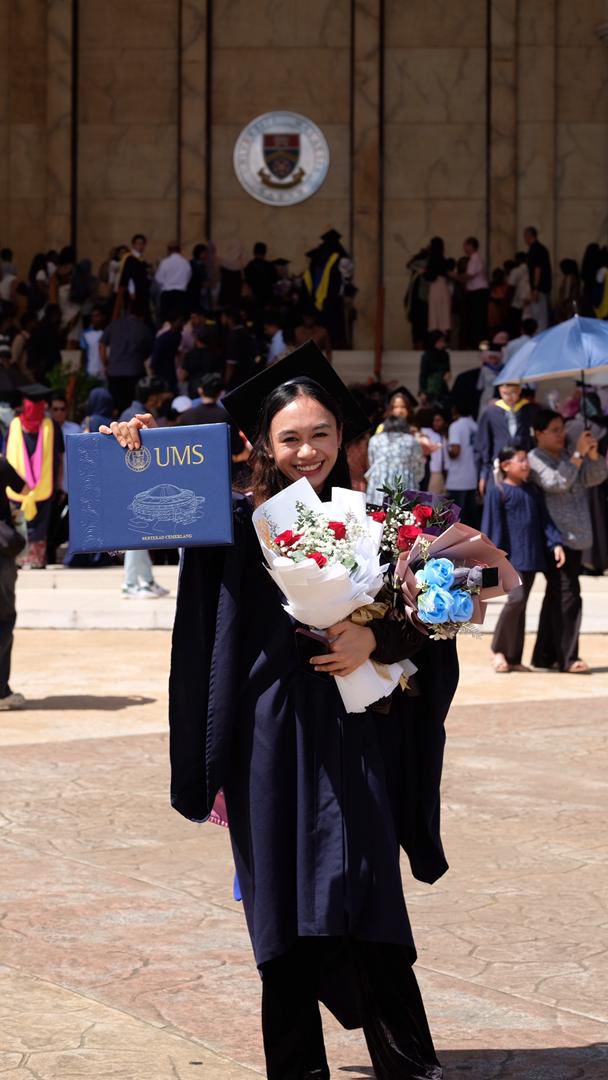 Chelsea yang merupakan anak jati Penampang menzahirkan rasa syukur yang mendalam selepas berjaya menamatkan pengajian, meskipun perjalanan akademiknya mengambil masa lebih panjang daripada yang dirancang.