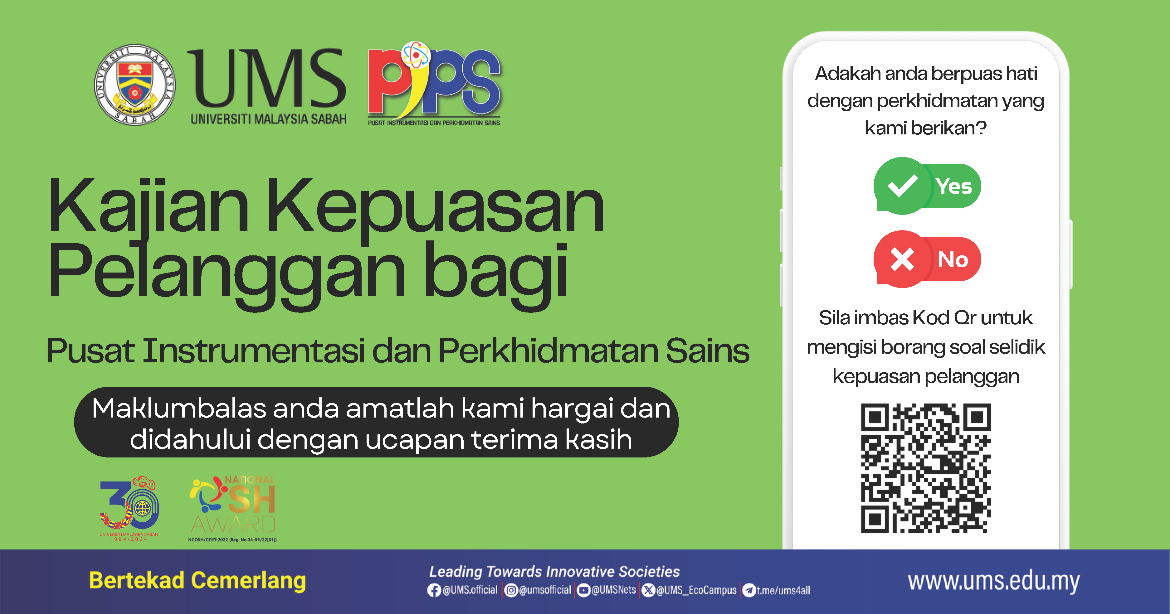 Pihak kami memohon maklum balas daripada YBrs. Prof./Prof. Madya/Dr./Tuan/Puan untuk melengkapkan soal selidik kajian kepuasan pelanggan melalui imbasan kod QR di poster bagi meningkatkan mutu & kualiti perkhidmatan kami.