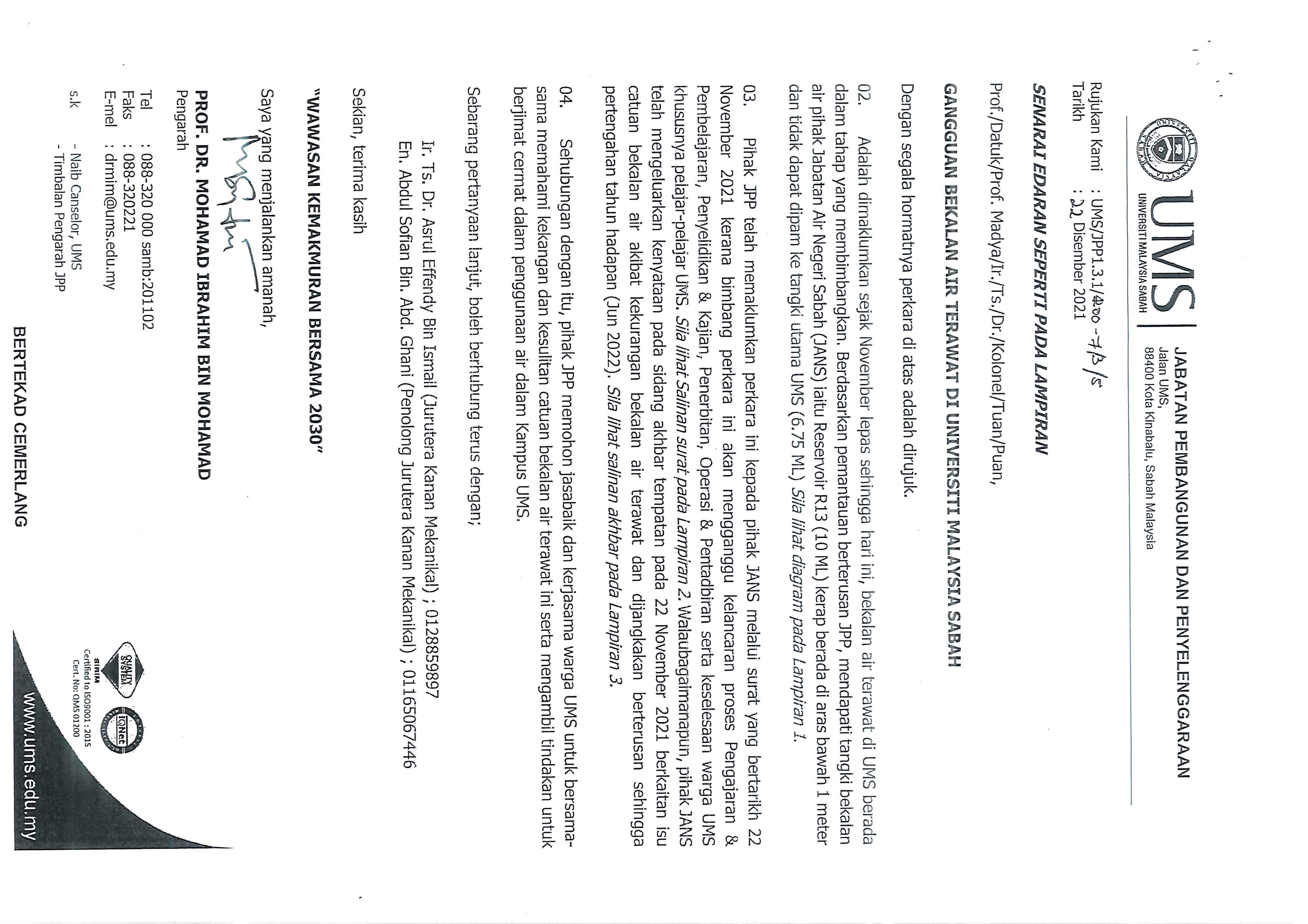 Dimaklumkan bahawa Kampus Induk, Kampus Antarabangsa Labuan & Kampus Sandakan UMS akan mengalami gangguan perkhidmatan rangkaian WIFI mengikut ketetapan yang berikut: