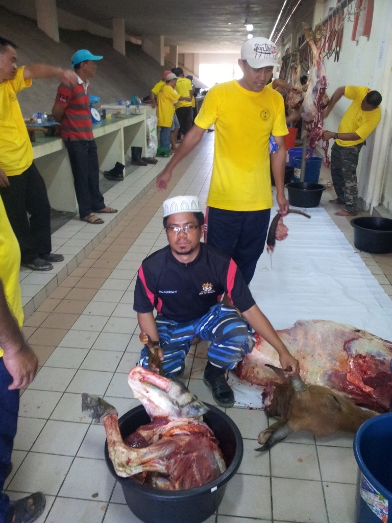 According to the Head of UHEIM, Dr. Muhammad Suhaimi Taat, the slaughtering of the cows started at 8.30 am and was assisted by UMS staff.