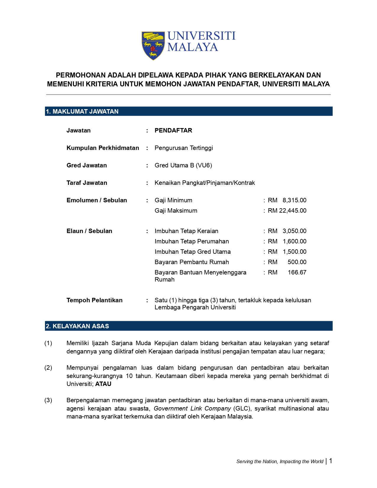 Pengumuman Daripada: Bahagian Pengurusan Sumber Manusia (BPSM), Jabatan Pendaftar